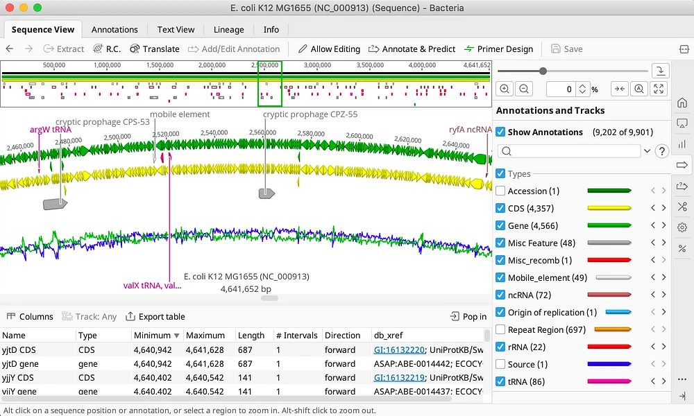Geneious Prime通过将原始数据转换为可视化的呈现,使序列分析变得直观且用户友好,从而使生物信息学变得容易访问。
